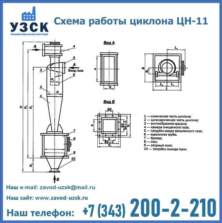 При этом ощутимой разницы в цене между универсальным и узконаправленным, подобранным в соответствии с конкретными техническими требованиями циклоном, нет. Стоимость воздухоочистительного оборудования типа циклон обусловлена маркой и толщиной стали, из которого он изготовлен, сложностью и специфичностью конструкции, наличием дополнительного оснащения (бункер, улитка и другие). При необходимости, на заводе УЗСК в Энгельсе будет изготовлен циклон по индивидуальным техническим чертежам заказчика.