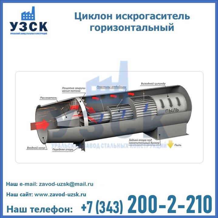 Горизонтальные циклоны-искрогасители ЦГ поставляются в Энгельсе в сборке или же транспортными единицами для последующей сборки, если предназначены для работы с большими объемами.