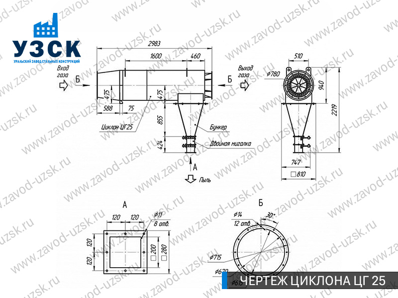 Монтаж циклона-искрогасителя ЦГ должен осуществляться непосредственно к горизонтальному вентиляционному каналу на входе в систему фильтрации и аспирации. Заказать изготовление по индивидуальному техзаданию или купить готовый циклон-искрогаситель ЦГ на заводе УЗСК в Энгельсе можно, оставив заявку прямо на сайте или позвонив по указанному телефону, уточнив все детали касательно продажи оборудования.
