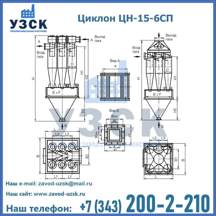 Завод «УЗСК» в Энгельсе предлагает большой выбор циклонов ЦН-15-500×6СП и прочих устройств, полностью укомплектованных и готовых к эксплуатации. Мы гарантируем соответствие оборудования всем требованиям ГОСТ и ТУ, износостойкость и высокую производительность предлагаемого оборудования. Уральский Завод Стальных Конструкций изготавливает и продает надежное, эффективное и производительное оборудование, имеющее длительную гарантию и большой эксплуатационный ресурс. Если требуется изготовить циклон нестандартных размеров, то такой вариант выполнения заказа тоже предусмотрен, так как предприятие имеет собственные производственные площади и надежных поставщиков. На все поставляемое или производимое оборудование имеются чертежи и прочая техническая документация. Заказать и купить циклоны или прочее оборудование высокого качества и по доступной цене можно через наш сайт или по указанному в разделе «Контакты» телефону.