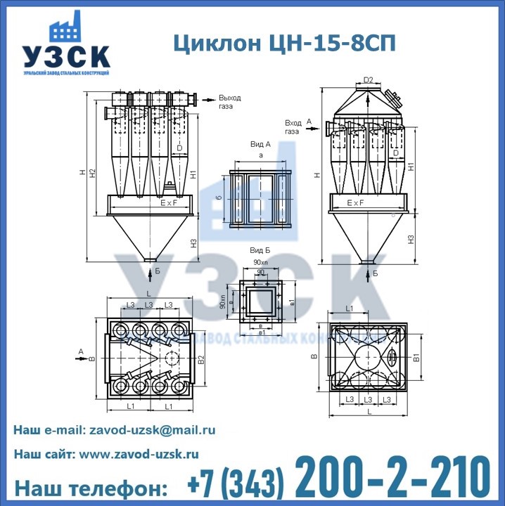 Завод «УЗСК» в Энгельсе предлагает большой выбор циклонов ЦН-15-500×8СП и прочих устройств, полностью укомплектованных и готовых к эксплуатации. Мы гарантируем соответствие оборудования всем требованиям ГОСТ и ТУ, износостойкость и высокую производительность предлагаемого оборудования. Уральский Завод Стальных Конструкций изготавливает и продает надежное, эффективное и производительное оборудование, имеющее длительную гарантию и большой эксплуатационный ресурс. Если требуется изготовить циклон нестандартных размеров, то такой вариант выполнения заказа тоже предусмотрен, так как предприятие имеет собственные производственные площади и надежных поставщиков. На все поставляемое или производимое оборудование имеются чертежи и прочая техническая документация. Заказать и купить циклоны или прочее оборудование высокого качества и по доступной цене можно через наш сайт или по указанному в разделе
