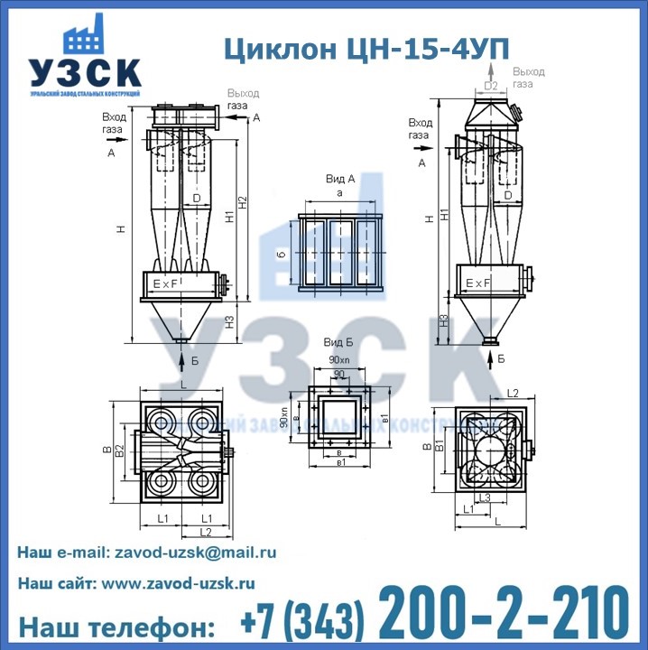 Завод «УЗСК» в Энгельсе предлагает большой выбор циклонов ЦН-15-800×4УП и прочих устройств, полностью укомплектованных и готовых к эксплуатации. Мы гарантируем соответствие оборудования всем требованиям ГОСТ и ТУ, износостойкость и высокую производительность предлагаемого оборудования. Уральский Завод Стальных Конструкций изготавливает и продает надежное, эффективное и производительное оборудование, имеющее длительную гарантию и большой эксплуатационный ресурс. Если требуется изготовить циклон нестандартных размеров, то такой вариант выполнения заказа тоже предусмотрен, так как предприятие имеет собственные производственные площади и надежных поставщиков. На все поставляемое или производимое оборудование имеются чертежи и прочая техническая документация. Заказать и купить циклоны или прочее оборудование высокого качества и по доступной цене можно через наш сайт или по указанному в разделе «Контакты» телефону.