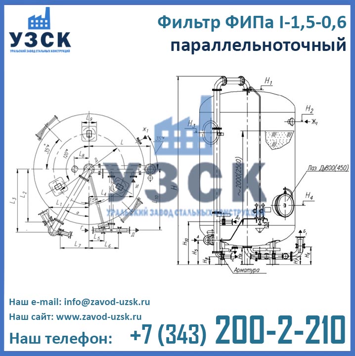 Уральский Завод Стальных Конструкций – ведущий производитель фильтрационного оборудования, осуществляющий изготовление параллельноточных фильтров ФИПаI 1,5-0,6 в соответствии требованиями ГОСТ. Получить консультацию по подбору оборудования, уточнить актуальные цены фильтров ФИПа I 1,5-0,6 в Энгельсе и сроки их изготовления, запросить технические характеристики и сертификационные документы Вы можете, связавшись с менеджерами отдела продаж завода УЗСК по координатам, указанным в разделе «Контакты». Если Вы уже определились с выбором и хотите купить фильтр ФИПа I ступени очистки прямо сейчас, заполните форму онлайн заказа размещенную ниже.