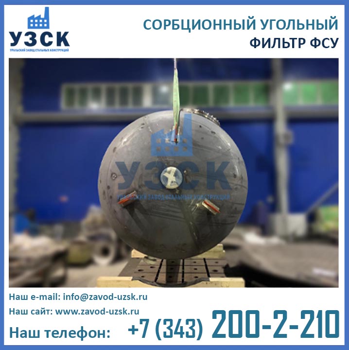 Качественную работу отопительных и промышленных котельных, линий по очистке конденсата и природных вод, электростанций обеспечивает фильтр сорбционный угольный типа ФСУ — вертикальный сосуд с одной камерой цилиндрической формы. Основное назначение оборудования состоит в глубокой очистке возвращаемого с производства конденсата от запахов, органических загрязнений и привкусов. Использование ФСУ в системах водоподготовки гарантирует очищение субстанции от масел, органических примесей, остатков нефтепродуктов до нормального значения — 0.52-1.0 мг/л. Купить в Энгельсе угольные фильтры предлагает наш Уральский завод стальных конструкций. Мы выполняем производство ФСУ под нужды предприятия, возможно изготовление сорбционных фильтров ФСУ из нержавеющей стали включая корпус и внутренние устройства.